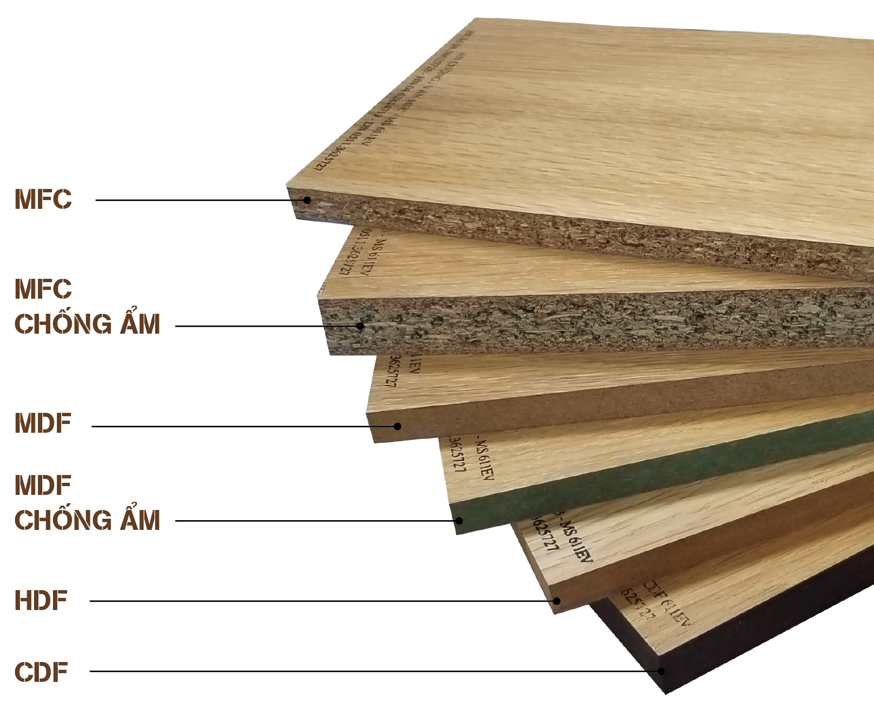 - Các loại gỗ An Cường phổ biến: MFC, MDF, HDF, Acrylic, Laminate, Veneer,… Mỗi loại gỗ có những đặc tính và ứng dụng riêng, phù hợp với từng khu vực và phong cách thiết kế.