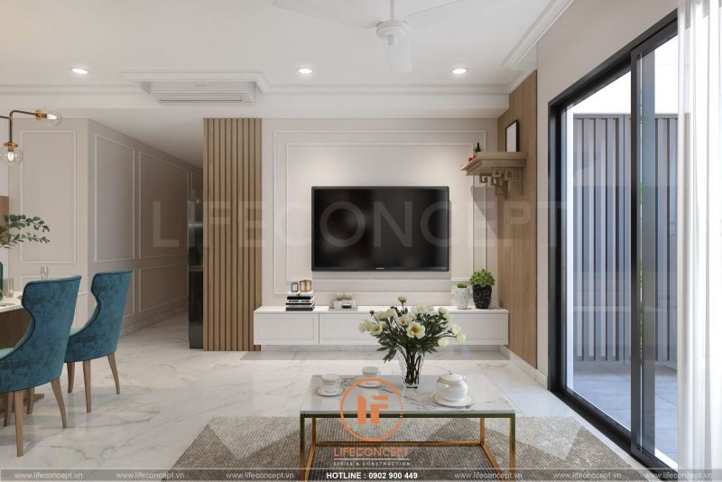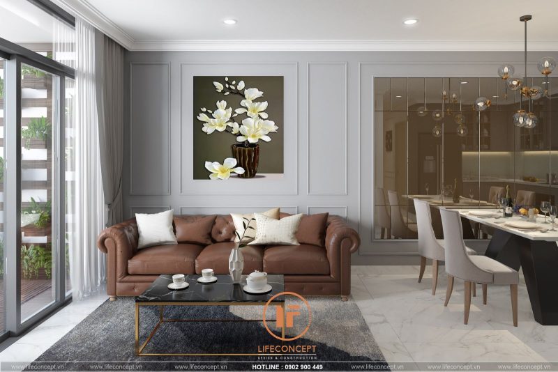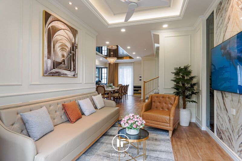 Trong không gian biệt thự nghỉ dưỡng, gạch ốp lát phòng khách Novaworld là vật...