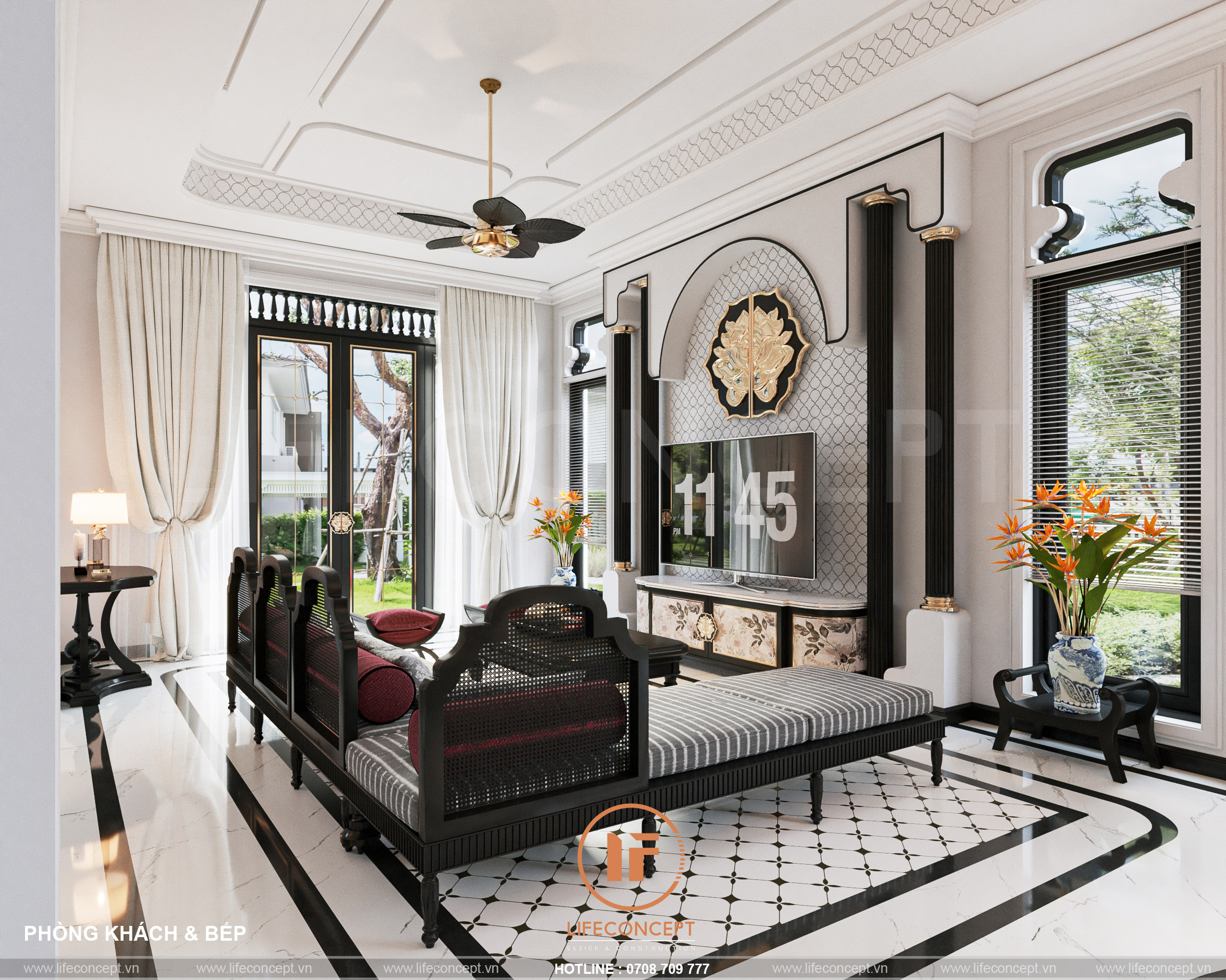 - Không gian bên trong được thiết kế mở với nhiều cửa sổ lớn. Cho phép ánh sáng tự nhiên lan tỏa khắp nơi, tạo ra một không gian thoáng đãng và tươi mới. Điều này làm nổi bật nét đặc trưng của kiến trúc villa song lập Aqua City phong cách Indochine, mang lại cảm giác gần gũi với thiên nhiên, giúp bạn tận hưởng sự bình yên và thư thái.