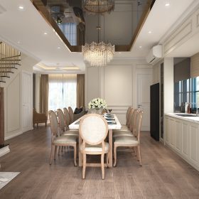 Phong cách tân cổ điển là sự kết hợp tinh tế giữa vẻ đẹp cổ điển và sự hiện đại, mang lại sự sang trọng, lịch lãm và đẳng cấp cho các thiết kế biệt thự song lập