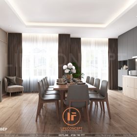 - Không Gian Mở: Thiết kế không gian mở là yếu tố quan trọng trong phong cách hiện đại. Cửa sổ lớn và các vách kính giúp tận dụng tối đa ánh sáng tự nhiên. Tạo nên một không gian sống sáng sủa và rộng rãi.