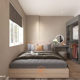 - Đồ nội thất: Màu sắc phù hợp với màu chủ đạo, chi tiết được sắp xếp khá gọn gàng. Đảm bảo tính thẩm mỹ, giúp tiết kiệm diện tích, mang lại sự tiện lợi tối đa cho gia chủ.