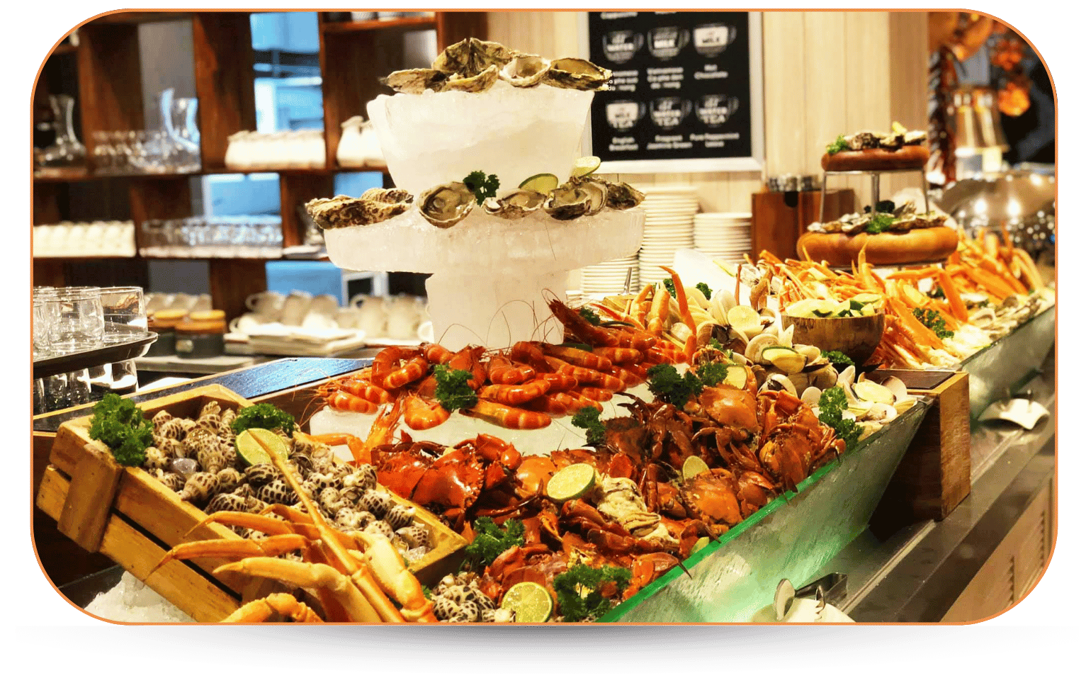 Du khách có thể thưởng thức hải sản tươi sống, món Âu tinh tế hay cocktail nhiệt đới được pha chế bởi bartender quốc tế.